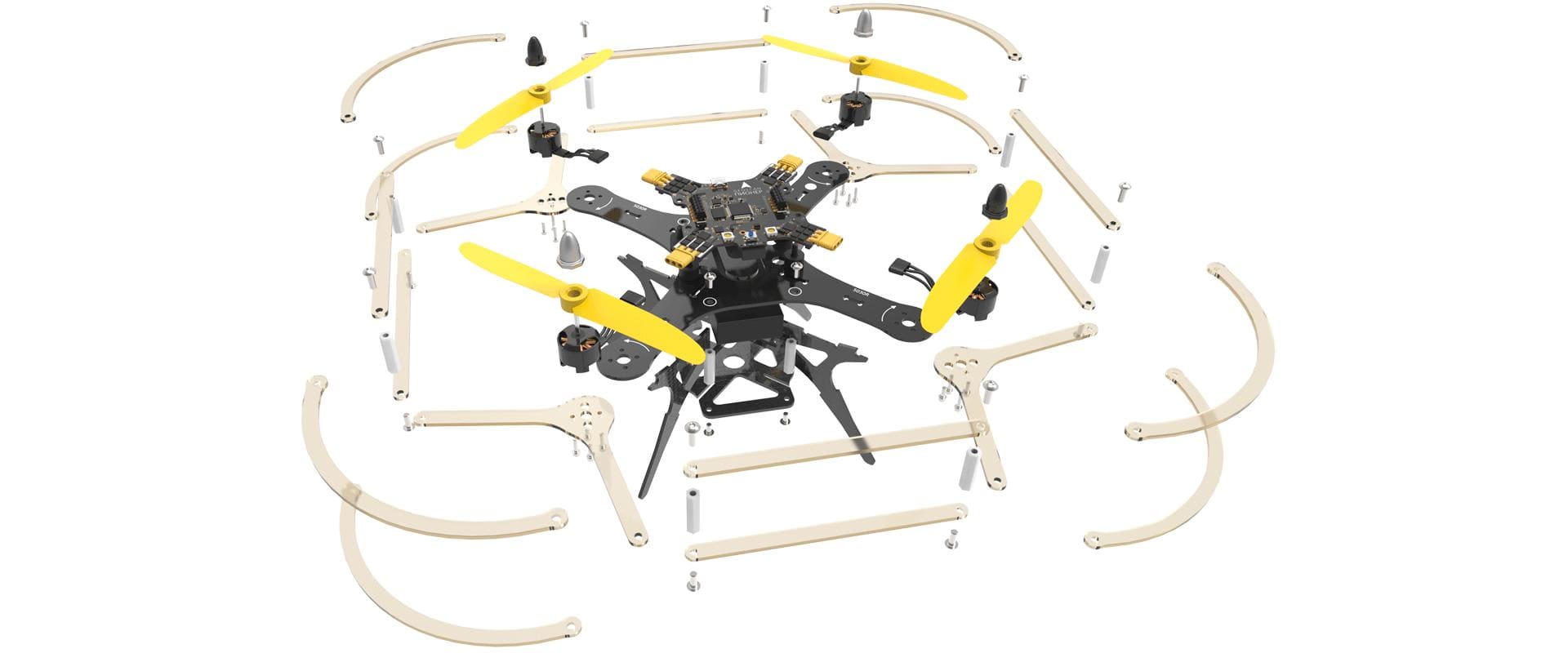Простая конструкция и доступность чертежей позволяют заменить практически любую деталь: раму, винтомоторную группу, модули и т. д., создав таким образом собственный уникальный квадрокоптер. - Доступный для освоения