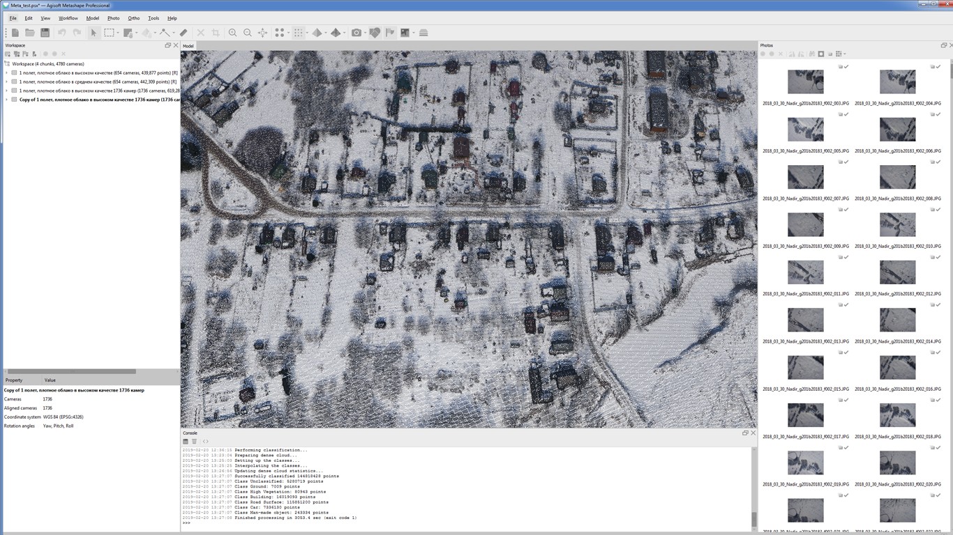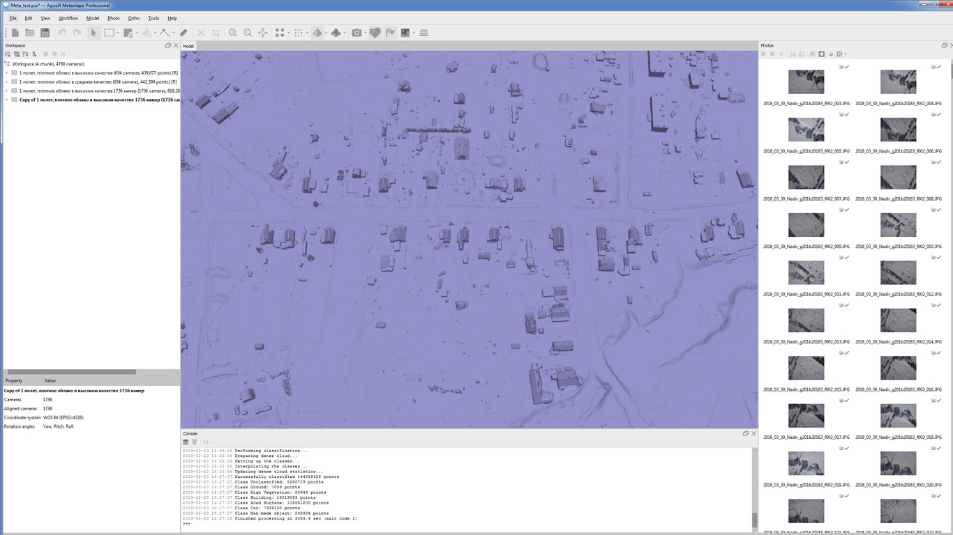 Постобработка позволяет удалять тени и искажения текстур с поверхности моделей, рассчитывать вегетационные индексы, составлять файлы предписаний для агротехнических мероприятий, автоматически классифицировать плотные облака точек и т.д.